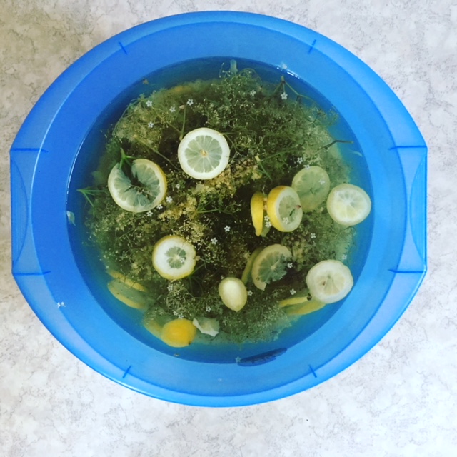 5. do lavoru dáme bezové květy, omyté a na kolečka pokrájené citróny, kyselinu, zamícháme a necháme 24 až 48 hodin louhovat