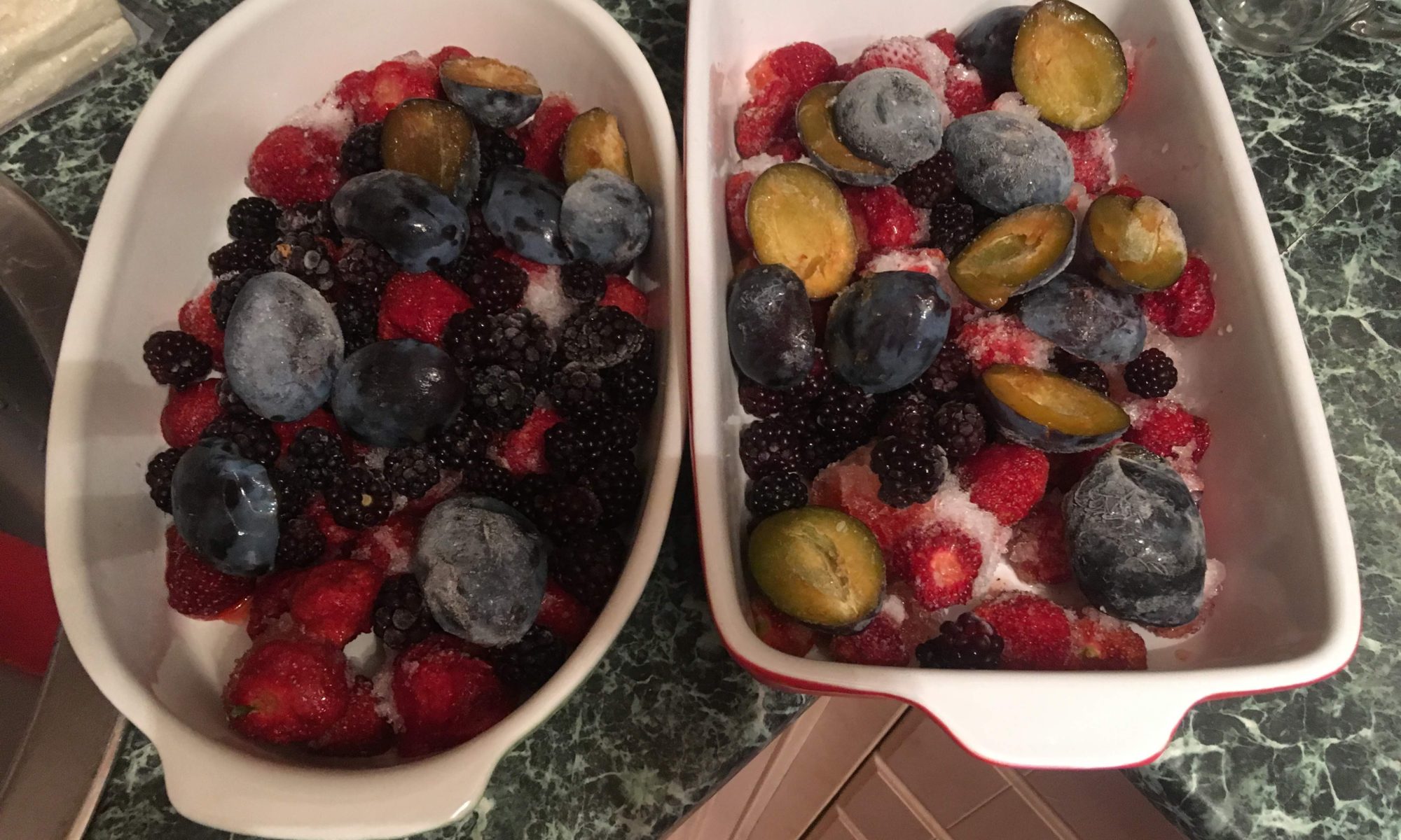- 3 kg ovoce (švestky, jablka, ostružiny, jahody, borůvky,…)